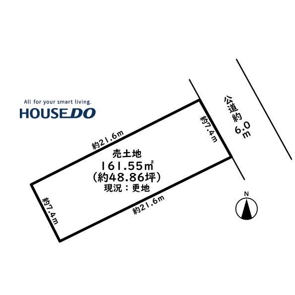 土地面積 161.55㎡(48.86坪) 接道 東側(公道)幅 約6.0m 間口 約7.40m